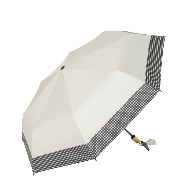 格子三折雨伞晴雨两用仿木手柄ins风太阳伞